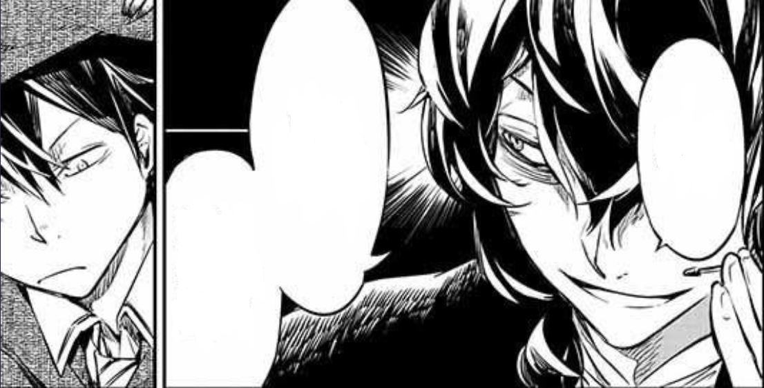 그가 체포되는 이유는 포트 마피아 시절의 범죄 행위들. 왜 이제 와서 자신을 체포하냐고 묻는 다자이에게 엽견 부대는 증거들이 갑자기 부활했다는 사실을 알려주곤 그를 구속합니다.